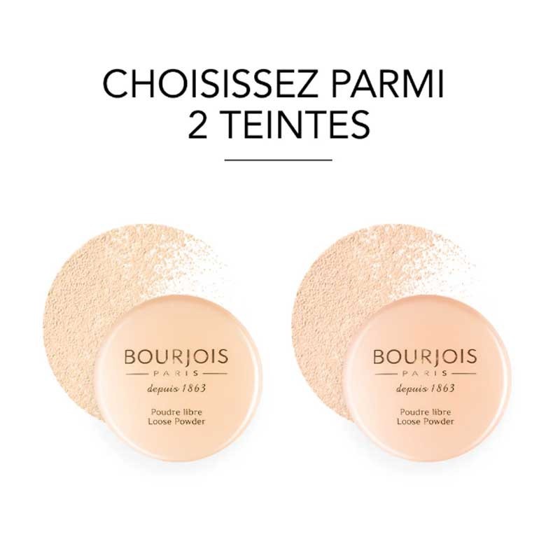 Bourjois Poudre Libre, elle fixe le maquillage pour une tenue irréprochable, empêche la peau de briller, sans dessécher la peau grâce à sa formule aérienne, d’une finesse extrême.