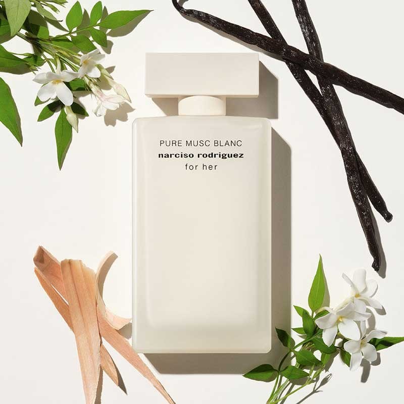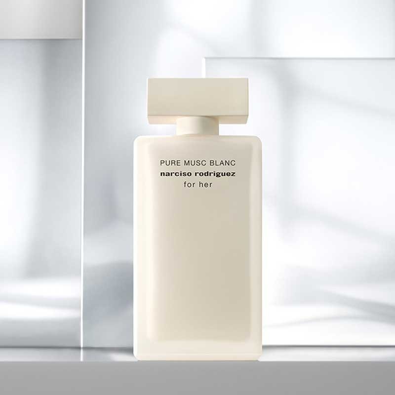 La nouvelle fragrance féminine intensément lumineuse, découvrez pour elle Pure Musc Blanc eau de parfum intense pour femme signée Narciso Rodriguez.