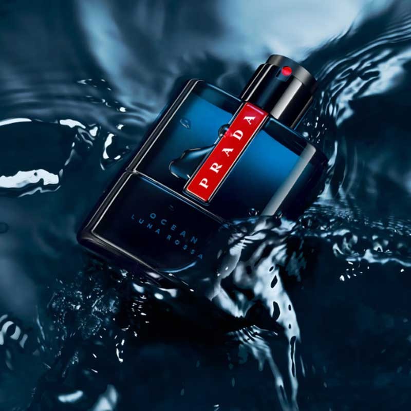 L’eau de toilette Prada Ocean, fusant néo-frais encapsulant un éclat de bergamote, contrastant avec l’extrême sophistication et la sensualité du vétiver et des notes élégantes d’iris.
