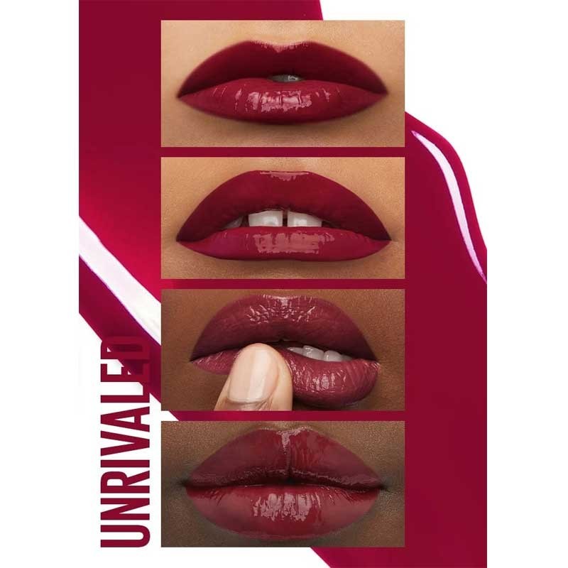 Parfait pour les voyages en déplacement, les lèvres actives ou les maquillages de lèvres quotidiens, le rouge à lèvres liquide Super Stay VINYL INK pigmenté et brillant instantané.