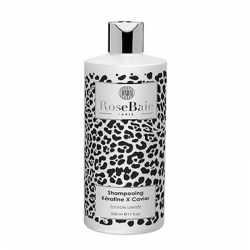 RoseBaie shampoing premium caviar et kératine réparation et nutrition, enrichi en kératine et extrait de caviar, sublimez vos cheveux avec ce soin premium offrant une action anti-âge, protège tout en leur redonnant éclat et vitalité, nourrit vos cheveux intensément.