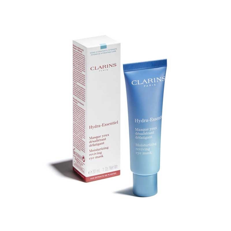 Clarins Hydra Essentiel masque yeux désaltérant et défatigant, ce masque yeux hydratant à la texture crème gel fraîche et douce offre ses actifs hydratants, défatigants et apaisants pour retrouver un regard pétillant.