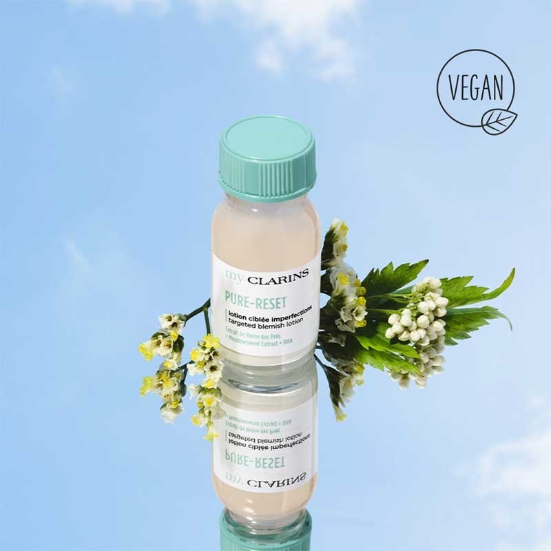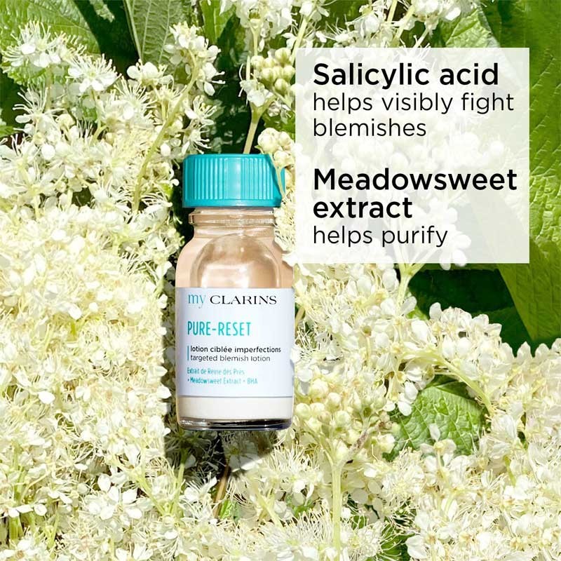 My Clarins Pure-reset lotion ciblée agit localement pour purifier et assécher efficacement les imperfections durant la nuit.